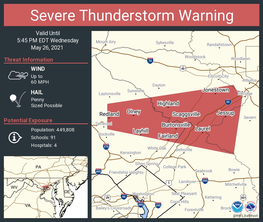 THERE IS A SEVERE THUNDERSTORM WARNING FOR FREDERICK, MD, ADAMSTOWN, MD, MIDDLETOWN, MD, BURKITTSVILLE, MD, JEFFERSON, MD, BRUNSWICK, MD, LOVETTSVILLE, VA, HILLSBORO, VA. 60 MPH WIND AND PENNY SIZED HAIL IS POSSIBLE! SEEK SHELTER IF YOU ARE IN THESE LOCATIONS RIGHT NOW!3:10 PM Update: