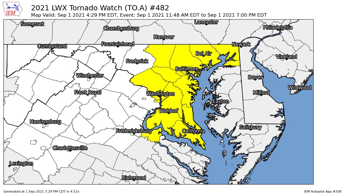 The tornado risk is at its greatest for the next few hours(2:30 PM Onward). 2000-2500 surface CAPE is in most locations in the DMV, and there has already been a wedge tornado in Anne Arundel County, including many others so far. There is a flash flood watch for the entire region, with a flash flood warning in Frederick county.